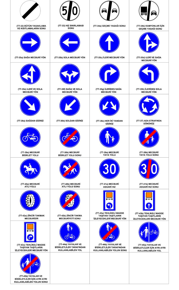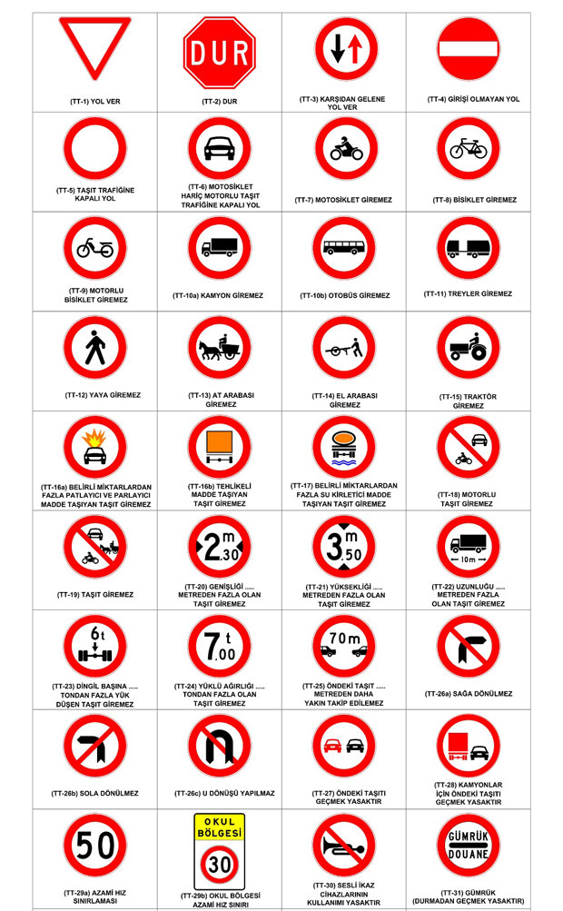 Yasak ya da Kısıtlama Bildiren Trafik Tanzim İşaretleri ve Mecburiyetleri Anlatan Trafik Tanzim İşaretleri: