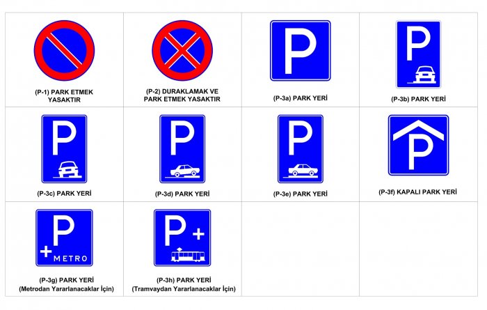 Yolda yine önemli olan bir diğer trafik işaretleri ise Durma ve Park etme işaretleri. Engelli alanlarına ve yasak park alanlarına park etmemek mağduriyet yaratmamak için dikkat edilmesi gereken işaretlerdir.